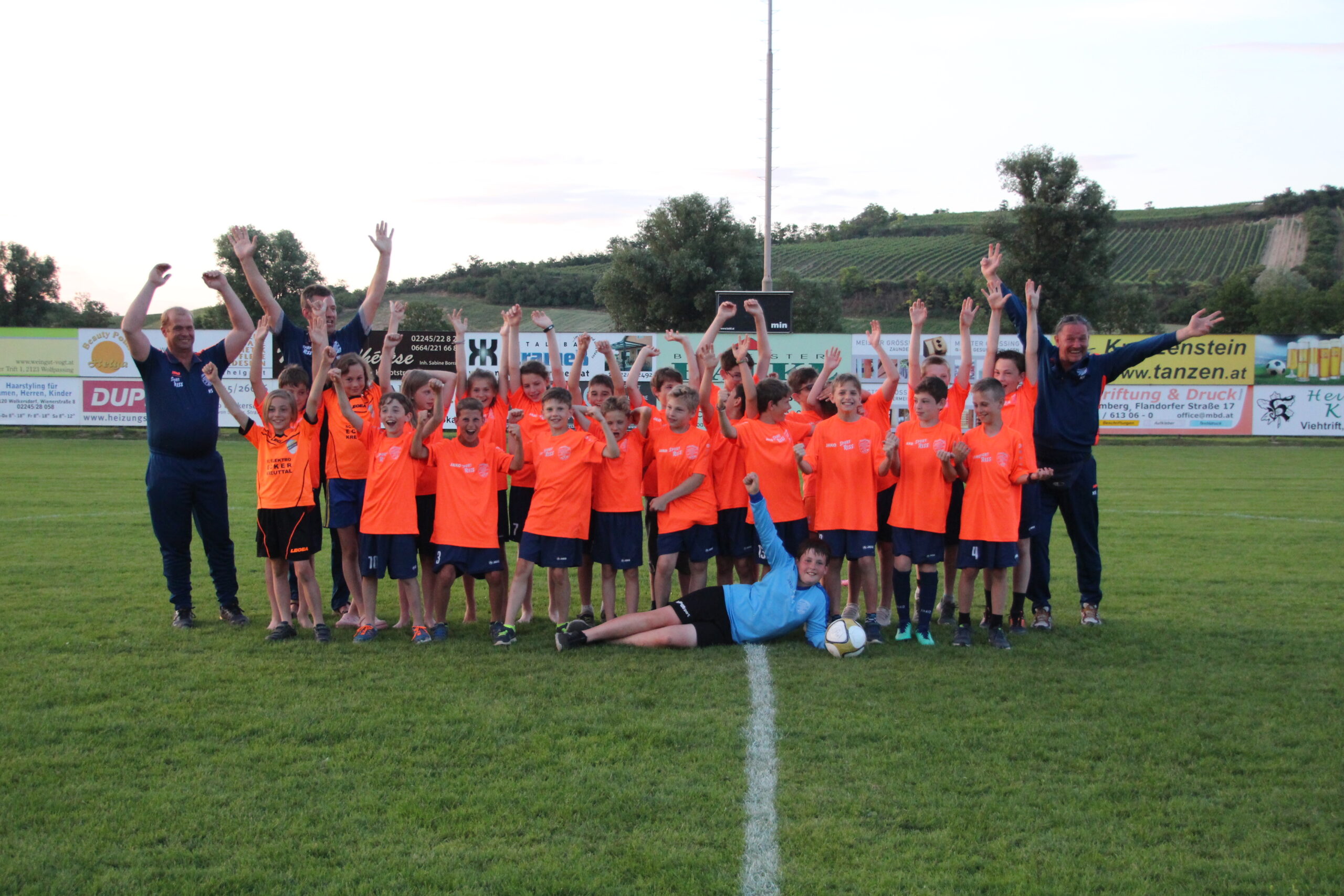 Beim Kampfmannschaftsspiel SG Ulrichskirchen – Eckartsau am Freitagabend konnten unsere Jungkicker mit einlaufen und danach das spannende Match verfolgen.